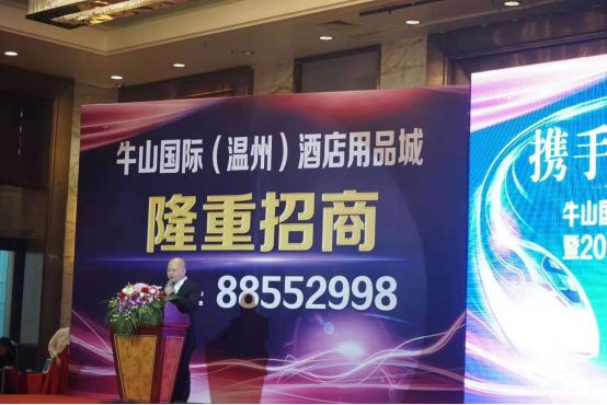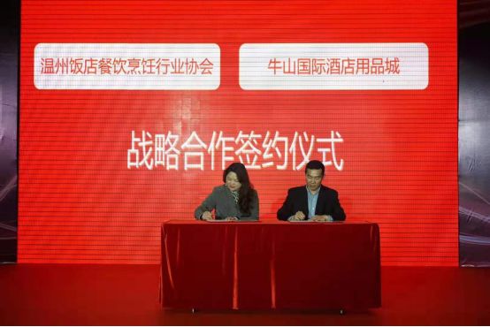 3月1日,温州牛山国际酒店用品城招商大会暨2019酒店用品厨业同仁新春联谊会隆重召开,协会秘书长吴洁到会祝贺并在招商大会上签订战略合作协议。