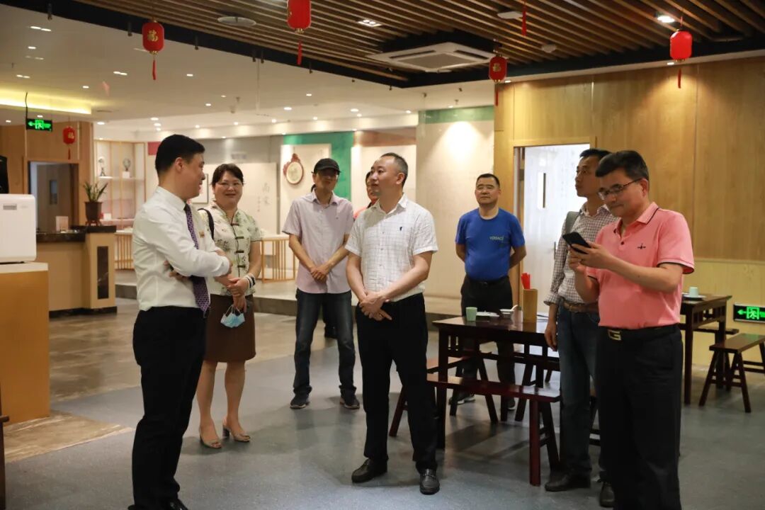 温州大酒家总经理池赵练详细介绍了大酒家的发展历史,根据温州市政府大建大美要求,2018年温州大酒家改造装修时,二楼吸收了温州本土瓯越文化、温州非遗和温州特产等元素,各包厢以温州街道名称命名,并结合现代消费新风尚设计了网红拍照点。三楼展示了温州风俗定婚、结婚、麦麦酒(宝宝宴)各种宴请菜品。温州大酒家老店新开,定位以瓯菜为主要菜系进行经营,并对温州瓯菜进行了很好的传承和创新,重新开业以来,深受广大消费者的欢迎。杨掌印副处长一行现场查看了温州大酒家,对大酒家的浓厚历史文化底蕴和注重瓯越文化设计(这种文化、旅游、美食完美结合正是省领导创建“百县千碗”活动的初衷),对温州大酒家创建美食特色企业,给予了高度的评价。