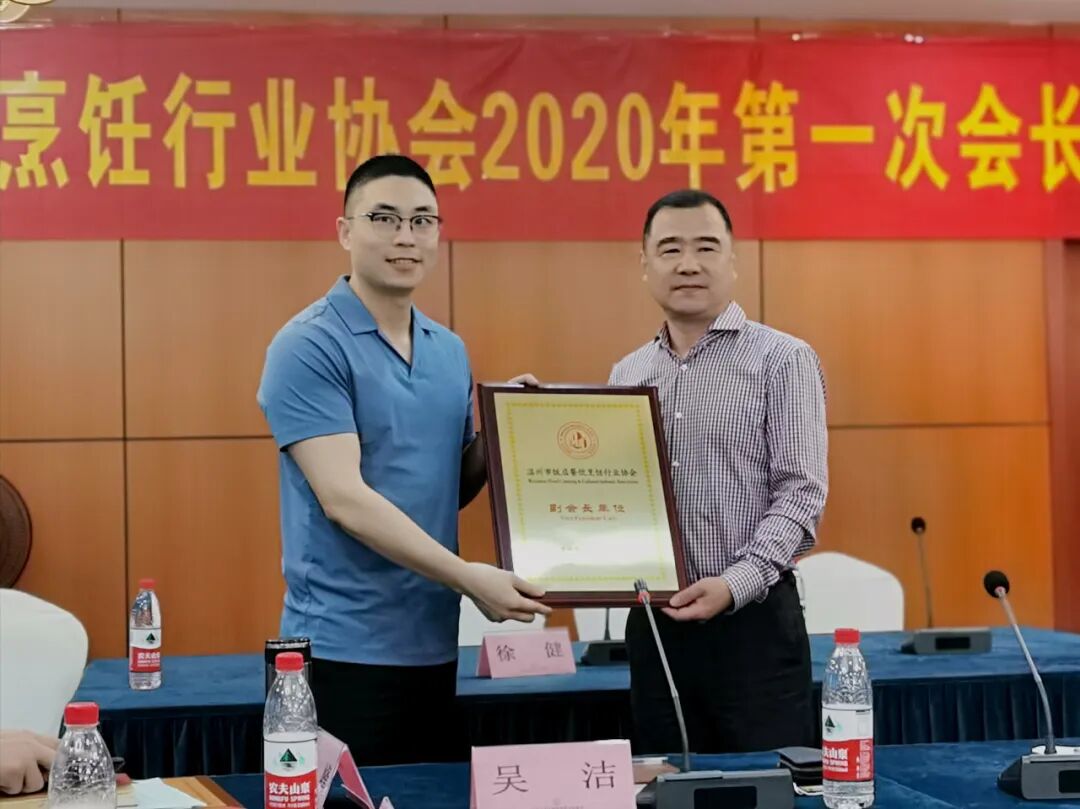 最后,会议审议通过了新申请两家副会长单位和一家理事单位,协会黄素武会长分别给华侨职专和顺锦餐饮服务有限公司颁发副会长牌匾,欢迎他们加入我们行业协会的温暖大家庭!