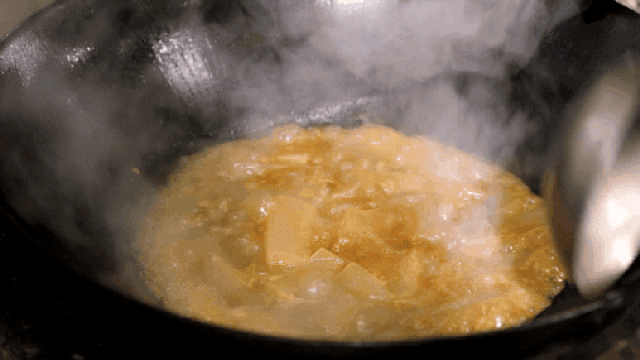 烧至汤汁粘稠、鱼皮入味,蒜子熬香成金黄色,加鱼皮一起焖入味。刚一盛盘,香气四溢,就足矣让人垂涎三尺。