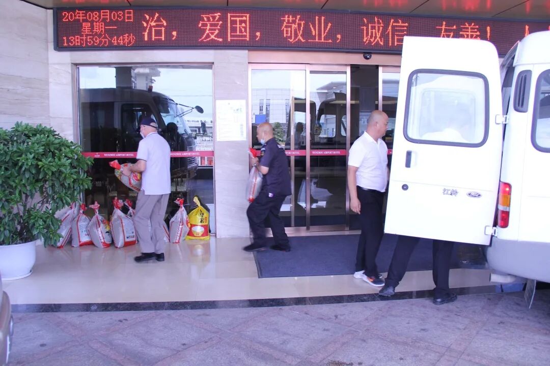 七月骄阳似火,气温节节攀升。为预防夏日高温中暑,切实做好一线员工的防暑降温工作,7月30日下午,温州诚达航空服务有限公司党支部书记赵崇安在机场宾馆副总杨文达、综合办主任项奇的陪同下,于温州机场宾馆开展夏日送清凉活动,向工作在一线的员工们发放防暑降温饮品,真切表达了公司对一线员工的关怀,给炎炎夏日带来一丝清凉。 在现场,公司领导一行与员工代表进行了亲切交谈,并向坚守一线的员工们致以诚挚的慰问,叮嘱他们炎热夏日里工作要注意安全,做好防暑降温,保障身心健康。 送清凉活动不仅送来了领导们的关心,更极大地鼓舞了一线员工的干劲,激发了员工的工作热情。现场员工非常感谢领导的关怀,表示会坚守岗位,继续保持吃苦耐劳的精神,克服高温天气,在保障自身安全的前提下圆满完成各项任务。 8月3日,今年第4号台风“黑格比”突然生成,来势汹汹。四大典型特征描绘出台风“黑格比”的个性:正面袭击、近海生成、风雨潮三碰头、强度增强。气象预报,温州将出现大到暴雨,局部特大暴雨。诚达公司领导层高度重视,于8月3日上午10时30分,再次召开防台抗台会议,并迅速启动防台抗台应急预案,提前部署各项防御措施,要求各部门高度重视,密切关注台风走向,克服麻痹大意心理,全面落实抗台工作。 准备沙袋、加固大门、检查楼顶各排水口、检查设备牢固等等有力措施,在机场宾馆各个重要位置落实到位,应急队伍丝毫不敢懈怠,争分夺秒地运送抗台物资,做好此次防抗台风准备工作。 公司各部门各司其职,为迎战“黑格比”铆足干劲。3日下午3点,公司应急小组已巡查完毕各个重要部位,移除危险部位物品,加强易涝、积水点分流堵治措施,并完善后勤物资保障等工作,齐心协力,共筑台风“防御堤”,奋勇抗击“黑格比”。