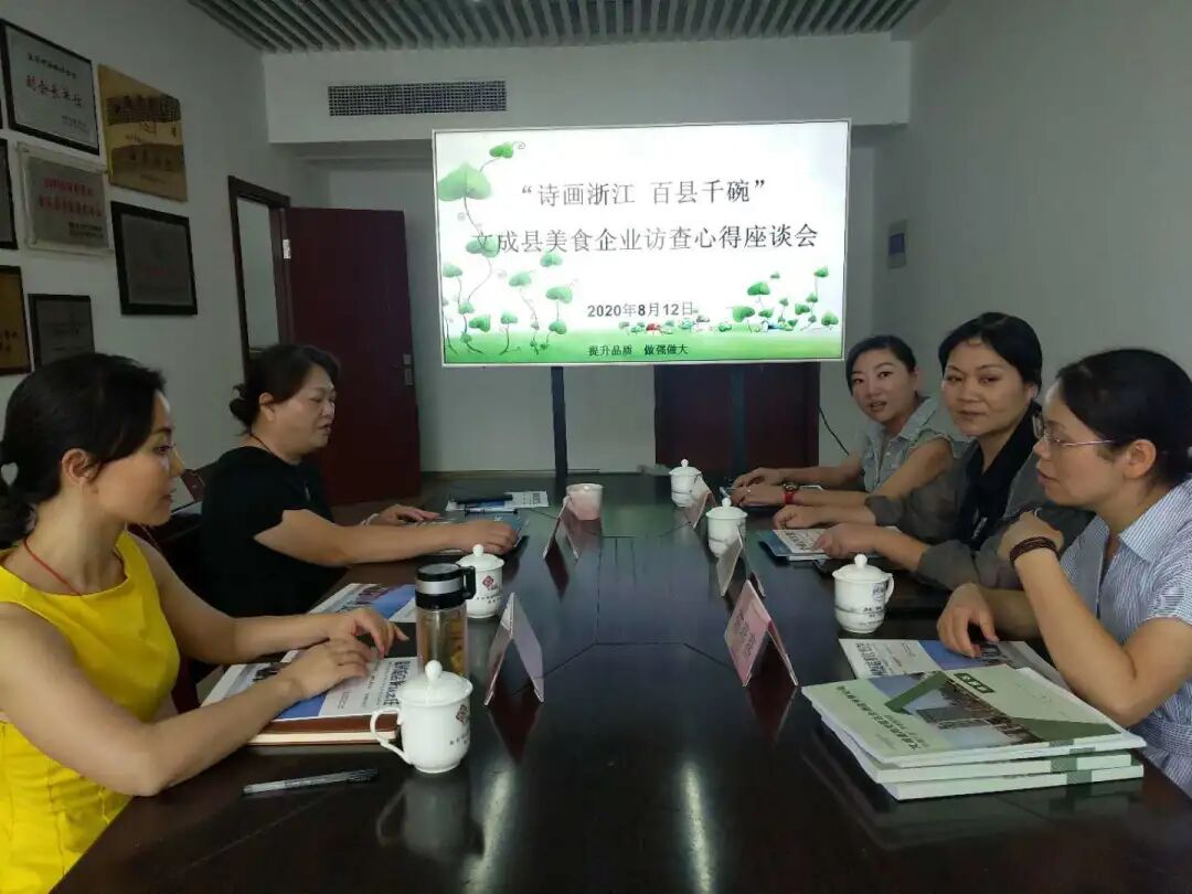 按照省委、省政府关于“做实打响'百县千碗'工程”的决策部署,省文化和旅游厅、省商务厅联合下发通知要求,今年下半年的工作重点是全面打响“诗画浙江•百县千碗”美食品牌,培育认定一批美食小镇、园区、体验店(示范店、旗舰店)。8月12日上午,文成县创建“诗画浙江•百县千碗”美食企业莅临我们协会交流汇报。 温州市饭店餐饮烹饪行业协会吴洁秘书长接待了野舍武阳总经理黄琳琴、仙人居营销总监刘琼、阳光假日大酒店办公室主任陈燕燕等一行来宾。 座谈会上,吴洁秘书长就文成的长桌宴、伯温家宴等地方特色美食,如何结合时下的疗休养热点及土菜精做,提升服务品质、做大做强企业,提出了自己的意见和建议。黄琳琴总经理、刘琼总监、陈燕燕主任也表示如何将“百县千碗”融入文成非遗特色,谈了各自的看法和决心。 积极响应“诗画浙江•百县千碗”的工作要求,为广大市民、游客带来全方位的美食体验,提振疫后消费信心,推动复工复产,不断提升温州地方特色美食的知名度和美誉度,是我们共同努力的目标和动力。