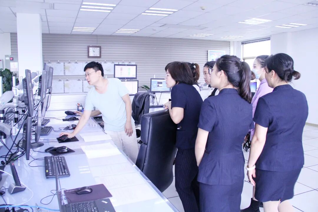 第一站首先来到空管站航管楼。赵书记重点强调了进入一线部门需要注意的事项后,大家分别参观了管制运行部、气象台预报室、进近管制室、塔台,深入现场了解飞行指挥、设备保障系统、气象服务等基本情况,真实了解了管制员们是如何指挥飞机飞行的。最后一站,我们来到技术保障部的监控机房,技术保障部值班员利用自动化屏幕带领大家观察空中目标的各种飞行状态,讲述雷达是如何发现探测到空中的目标。组员们学习气氛浓烈,向随行领导及设备维护人员提出了各种设备运行方面的问题,都获得了耐心的解答。