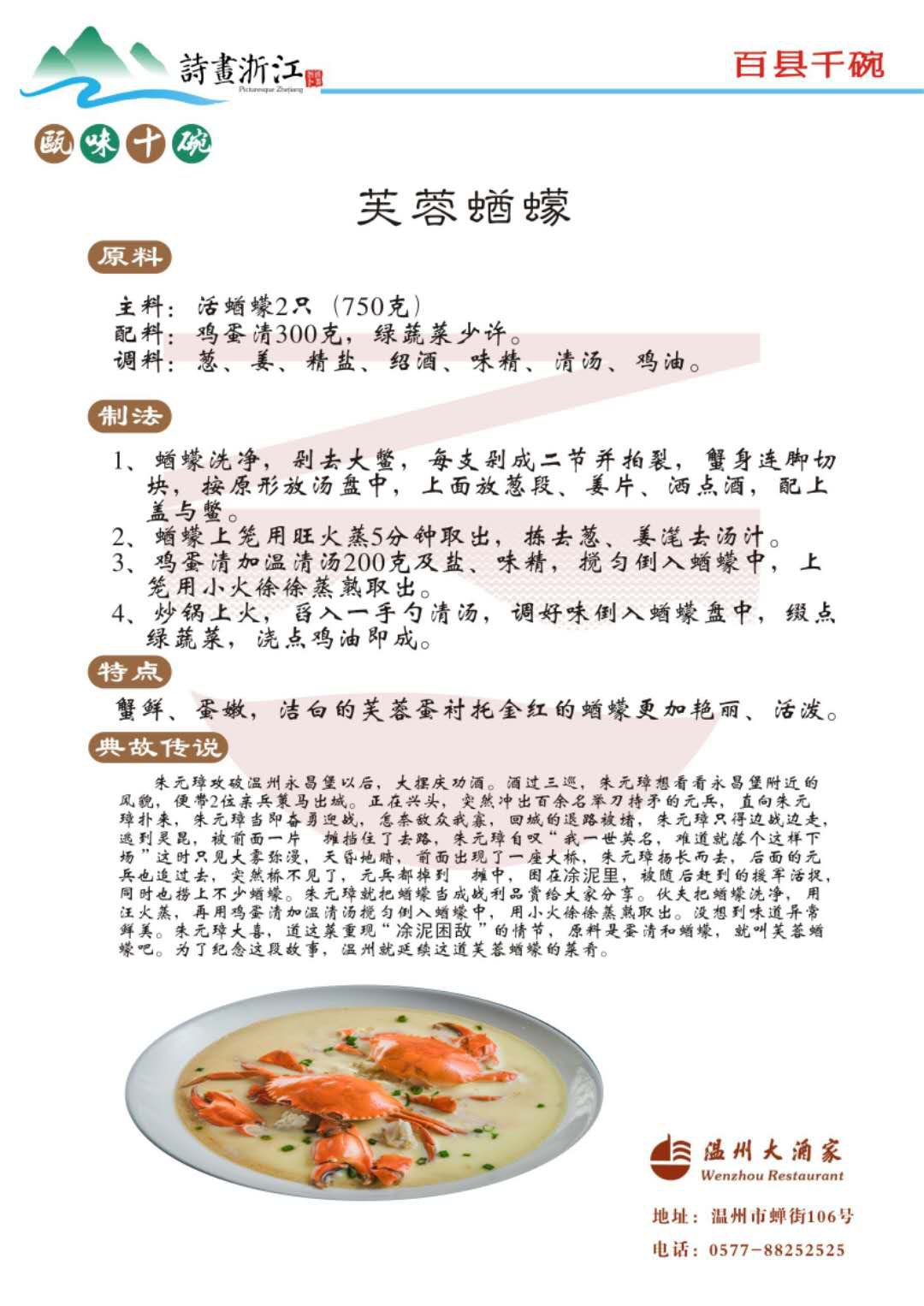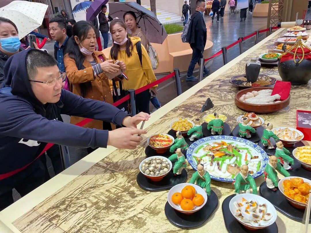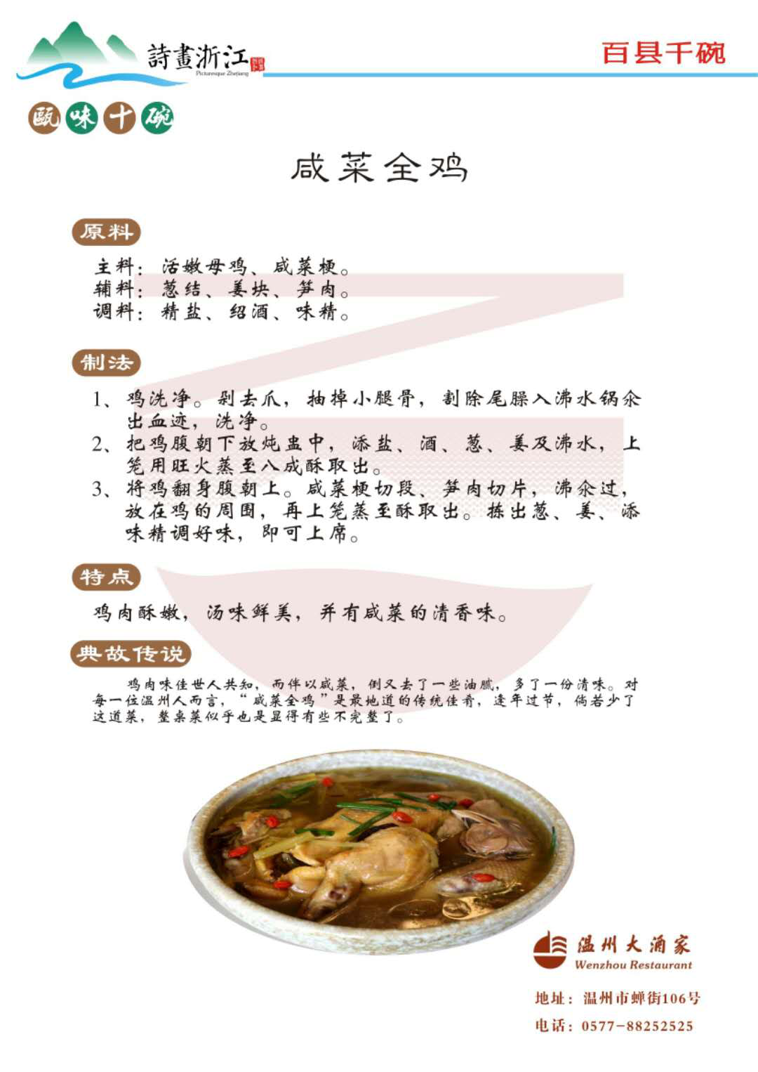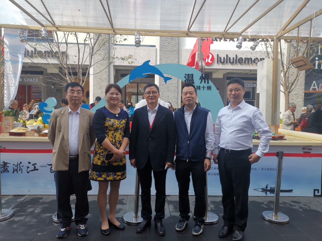 根据组委会的部署,展品一律用菜模布置,展台每道菜都设计了二维码,扫码有菜品介绍,了解菜品的主配料、制作方法和特点。展会期间,省餐饮行业协会沈坚会长,分别带钱江台直播和省协会其他领导现场进行采访和指导。在16-18日三天的展示期间,十位神态各异的绿衣娃娃抱着十味高脚红碗的冷菜,这一道美丽的风景线,惊艳了杭城百县千碗展示街,吸引着市民和游客争相拍照,一时成为百县千碗展区的“网红”打卡点。在我协会的精心安排下,10月16日当天组织了会员单位代表60多人现场观摩了本次厨师节活动。活动已圆满落下帷幕,在各参展单位和瓯菜大师的全力协助配合下,“瓯味十碗”展台大获成功,得到了多位省领导的肯定,荣获了“第十届厨师节展示金奖”,进一步扩大了瓯菜在全省乃至全国的影响力,发挥了瓯菜在文化旅游中的积极作用!今年以来,市文广旅局联合市饭店餐饮烹饪行业协会认定了20多家百县千碗美食体验店,编印了精美的“瓯味百碗”美食书籍,将“瓯菜走出去”,走进了上海和杭州进行推广宣传。31届上海旅游节温州分会场“百县千碗·瓯味香飘浦江”活动,杭州首届浙菜美食节暨第十届浙江厨师节,均是以美食为载体的推介活动。下一步将会继续开展“百县千碗·瓯味百碗”的美食大师培训和市级美食体验店验收,通过各种方式呈现提升瓯菜。希望以“百县千碗”为主线,全方位展示温州特色美食,讲述瓯菜故事,传播温州瓯味文化,打响“瓯味百碗”美食品牌,让更多人在瓯菜美食中了解温州厚重的文化底蕴。