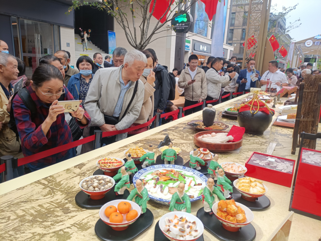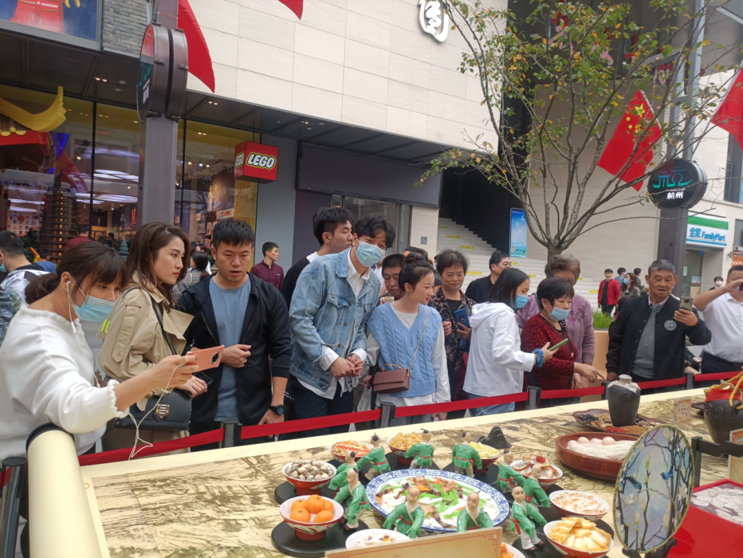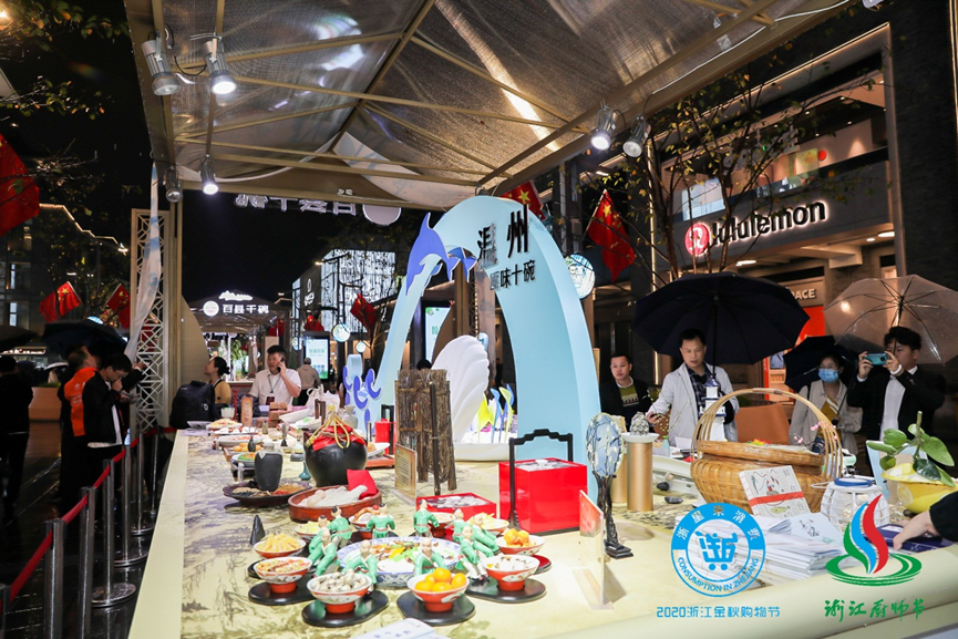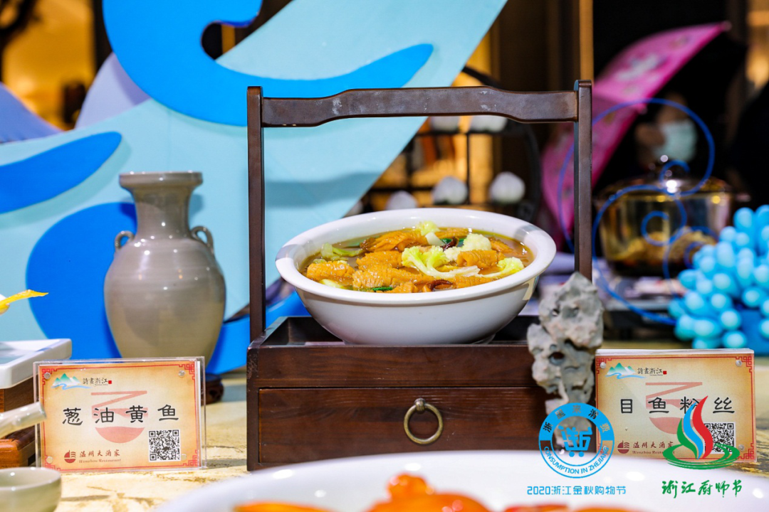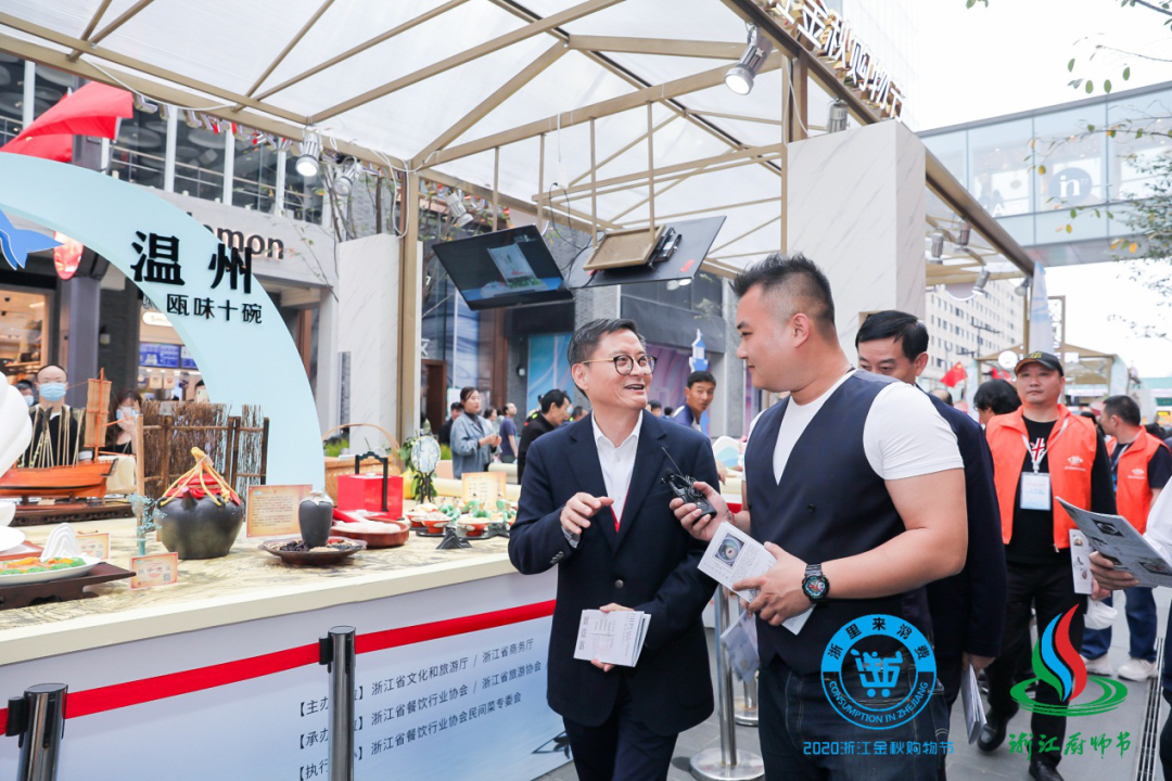 10月16日,“浙里来消费·金秋嘉年华”2020浙江金秋购物节在杭州湖滨步行街盛大开幕。本次活动以“赋能新餐饮,美食新生活”为主题,内容丰富多样;作为“这里来消费·金秋年嘉华”系列活动之一,首届浙菜美食节暨第十届浙江厨师节也同步开幕。这次盛会,温州分别在主会场内设置以温州风俗餐饮文化为代表的年夜饭和婚宴主题瓯菜展台,以及湖滨步行街瓯味十碗展台来展示瓯菜,进行瓯菜走出去的推广宣传。
